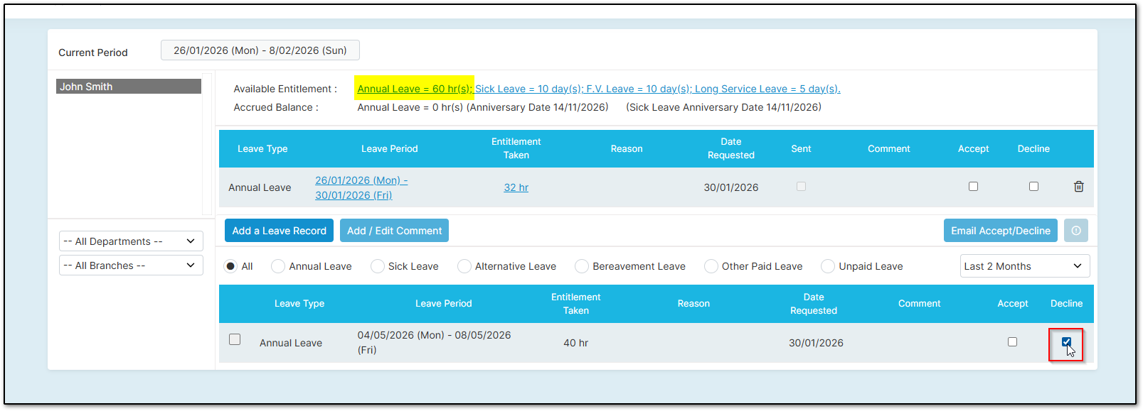 This approach allows the annual leave periods to be processed in the correct order, which can make it easier to clearly understand how much annual leave is being taken.