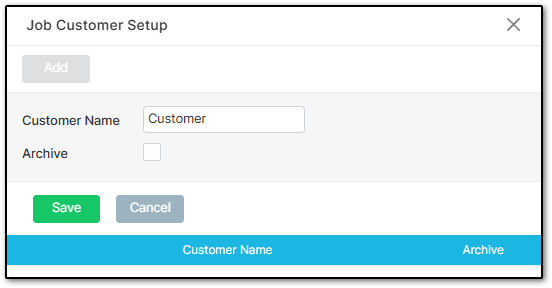 If you would like to set up a customer, select "Set up Customer" on the right-hand side. Select "Add" and enter a name for the customer before selecting "Save".